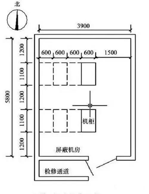 除此之外,還需要考慮預(yù)留施工防護空間,并盡量避免調(diào)整現(xiàn)有機房管路和屏蔽門體位置。以圖1為例,在同等條件下,應(yīng)該優(yōu)先考慮將機房向東側(cè)和北側(cè)擴展。因為南側(cè)是機房屏蔽門體和檢修通道,向南擴展需要將其拆除后重新安裝,施工難度較大,特別是屏蔽門體本身是屏蔽機房最重要的防護部位,一旦重新安裝后屏蔽效果降低,會對機房整體屏蔽效能產(chǎn)生較大影響。如果向西側(cè)擴容,擬拆的墻體緊貼機柜,在實施過程中缺少施工作業(yè)面,不利于對現(xiàn)有設(shè)備的防護。因此,在制定擴容方案時需要綜合考慮各種因素,在滿足建設(shè)目標(biāo)的前提下,盡可能減少投資,降低實施難度。