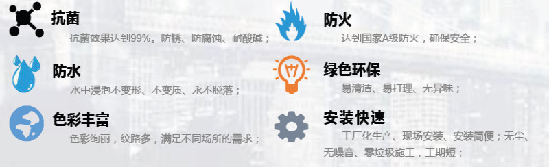 因此在選用墻板、天花等裝飾材料時就必須考慮產(chǎn)品的抗菌、抗霉、防火、防水抗撞擊等綜合性能。